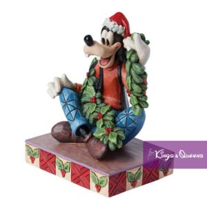 A Goofy Christmas. Goofy wears patchwork patterned pants and a smile in this charming design by Jim Shore. Wearing a Santa hat, Goofy decorates himself with garlands and mistletoe. Celebrate the magic of the holidays with this iconic Disney character. Beautifully hand-painted and crafted with sophisticated styling and attention to detail. Jim Shores style evokes a sense of nostalgia with traditional themes, quilt patterns and design motifs inspired by American and European folk art. This A Goofy Christmas figurine was proudly designed by award-winning artist Jim Shore. Packaged in an individual box with photo on the front.