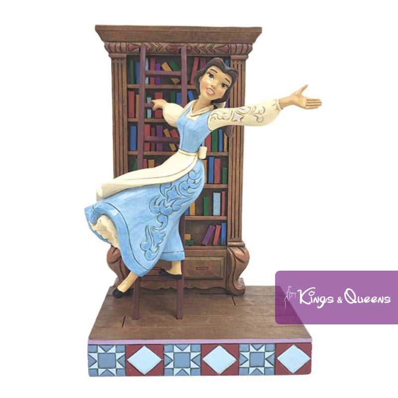 A World of Books. Celebrating the 35th anniversary of Beauty and the Beast in 2025, this vibrant Jim Shore scene captures Belle singing in her beloved library as she glides gracefully down the bookshelf ladder. The beautiful scene is decorated with exquisite detail. Beautifully hand-painted and crafted of high-quality polyresin with refined style and attention to detail. Jim Shores style evokes a sense of nostalgia with traditional themes, quilt patterns and design motifs inspired by American and European folk art. Packaged in an individual box with photo on the front. This A World of Books figurine was proudly designed by award-winning artist Jim Shore.