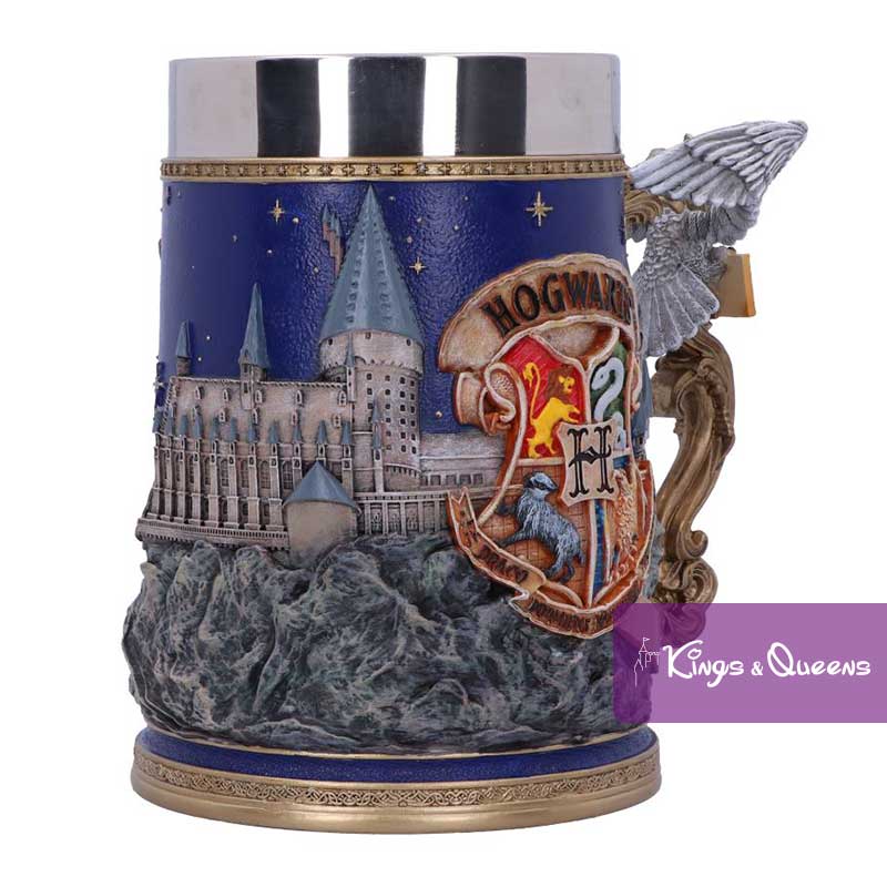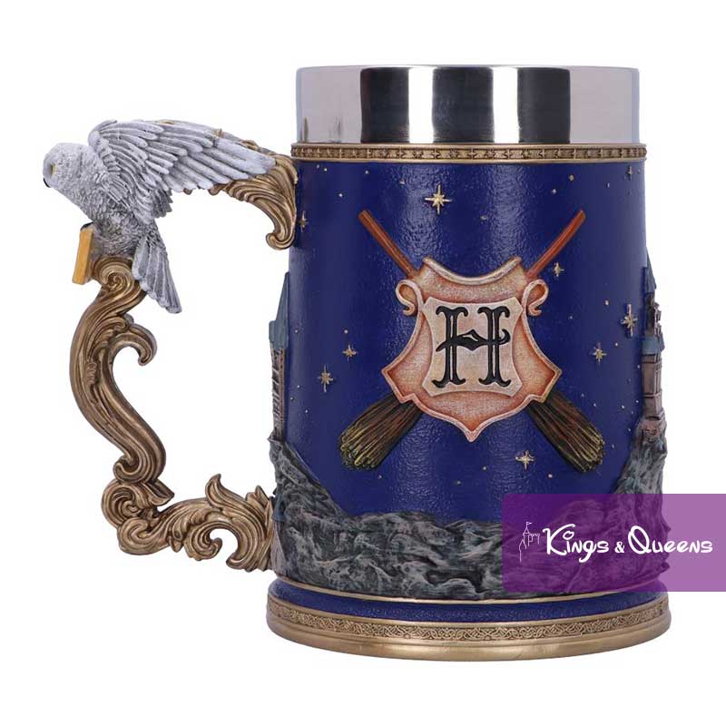 Harry Potter Pul Hogwarts. Show your passion for the best School of Witchcraft and Hocus Pocus in the world with this officially licensed Hogwarts collectible Tankard. The centerpiece of the pul is the Hogwarts crest, featuring the four houses of Gryffindor, Slytherin, Hufflepuff and Ravenclaw, flanked by a 3D landscape of the school of Hogwarts itself. While on the handle of this beautifully crafted Tankard, Hedwig, the white owl, can be seen holding a letter of admission from Hogwarts. Cast in the finest resin before being magically hand-painted, this piece is the perfect addition to any wizarding collection and can be enjoyed by witches, wizards and Muggles alike. We recommend setting this item down only as a decorative item and not as a drinking utensil. Not suitable for dishwasher and microwave!