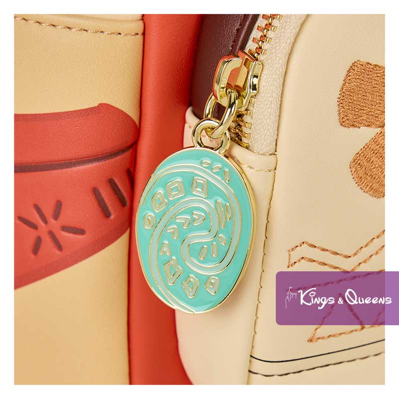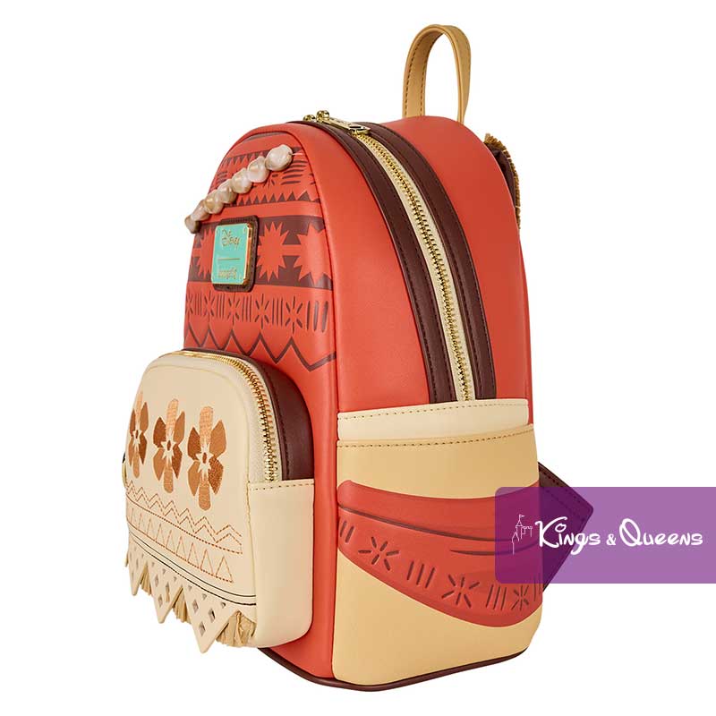 Loungefly Backpack Moana Cosplay. Put together Moana-inspired style with this mini backpack! This bag features Moana’s ensemble, complete with embroidered details, real puka shells, debossing, and burlap fringe! It’s the perfect accessory for when adventure calls you! Features: Faux leather (polyurethane); Sturdy top handle; Adjustable shoulder straps; Applique, burlap fringe, debossed, embroidered, and printed details. Enamel zipper charm. Real puka shells. Coordinating inside lining. This Loungefly Backpack Moana Cosplay is an officially licensed Disney product.
