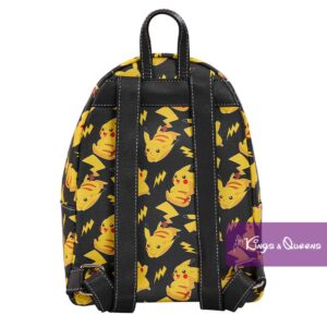 Loungefly Backpack Pokémon Pikachu AOP. This cheerful backpack features an All-Over-Print (AOP) of Pikachu in various poses. A must-have for any Pokémon trainer. Features: Vegan leather (polyurethane); Adjustable shoulder straps; Front zipper pocket; Side insert pockets; Print details. Coordinating inside lining. This Loungefly Backpack Pokémon Pikachu AOP is an officially licensed Pokémon product.