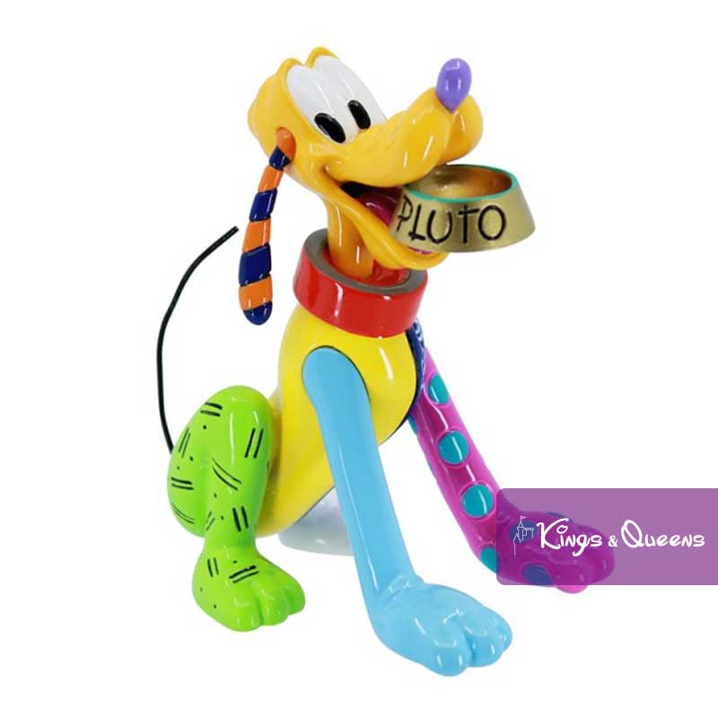 Pluto 95th Anniversary. Pop artist Romero Britto celebrates the 95th anniversary of everyone’s favorite Disney dog with this mini-tribute featuring Pluto, depicted in Britto’s iconic and cheerful color palette. Handmade and painted by skilled artisans. Designed by pop artist Romero Britto for Pluto’s 95th anniversary. Pluto 95th Anniversary is officially licensed by The Walt Disney Company. This Pluto 95th Anniversary figurine comes in a windowed gift box.