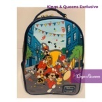 Rugtas Mickey’s Marching Band Exclusive. Kings & Queens brengt deze vrolijke tas als enige in Europa als Loungefly Exclusive! De kunstlederen tas komt uit de Disney-collectie van het Amerikaanse designermerk Loungefly. De tas heeft een kleurrijke print met Mickey als Tambour-Maître van Mickey’s Marching Band. Op de achterzijde van de tas ontbreekt Pluto natuurlijk ook niet… Samen met z’n bekende vrienden Donald, Katrien, Goofy, Pluto en natuurlijk Minnie zorgt Mickey voor feestelijke muziek in de straten van Duckstad. Aan de ritssluiting van de tas zijn twee goudkleurige hangers in de vorm van muzieknoten bevestigd. De tas is voorzien van twee open zijvakjes, twee verstelbare schouderbanden en een bijpassende binnenvoering.