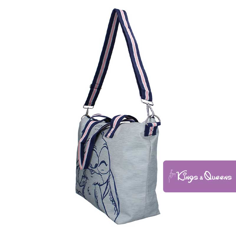 Shopper Stitch Ohana Grey. Take the popular Disney character everywhere you go with the shopper from the Fashion Mission collection. The Stitch shopper is gray in color and features a large print of the alien on the front. The Shopper Stitch Ohana Grey has two carrying options, namely two handles and a detachable, length-adjustable shoulder strap.